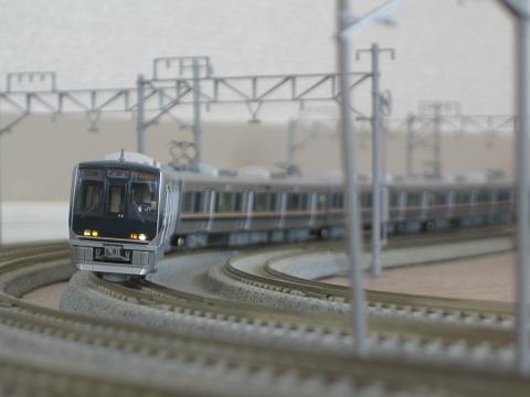模型はKATO製で、差異のない車体や、色の異なるヘッドライト・フォグランプなど、321系の特徴をよく模型化しています。