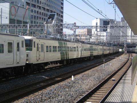 急いでカメラに収めました。っていうか、この185系止まってるんですが、田町の車庫に入るときはいつも止まるんですかね?