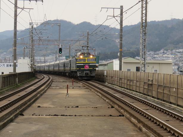 なんと、先日19日に「京の冬の旅50回記念」のヘッドマーク付きで運転されましたので、丸一日かけて職場の先輩達と追っかけをしておりました。