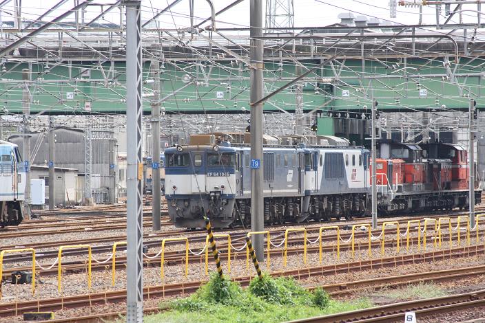 稲沢駅のお隣、清州駅を通過するEF64重連の貨物列車。中央線貨物のガソリン輸送列車5885レ。長野県の南松本行の貨物のようです。EF64といえばタンク車というイメージが強かったので、感激もひとしお。